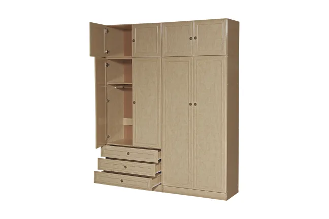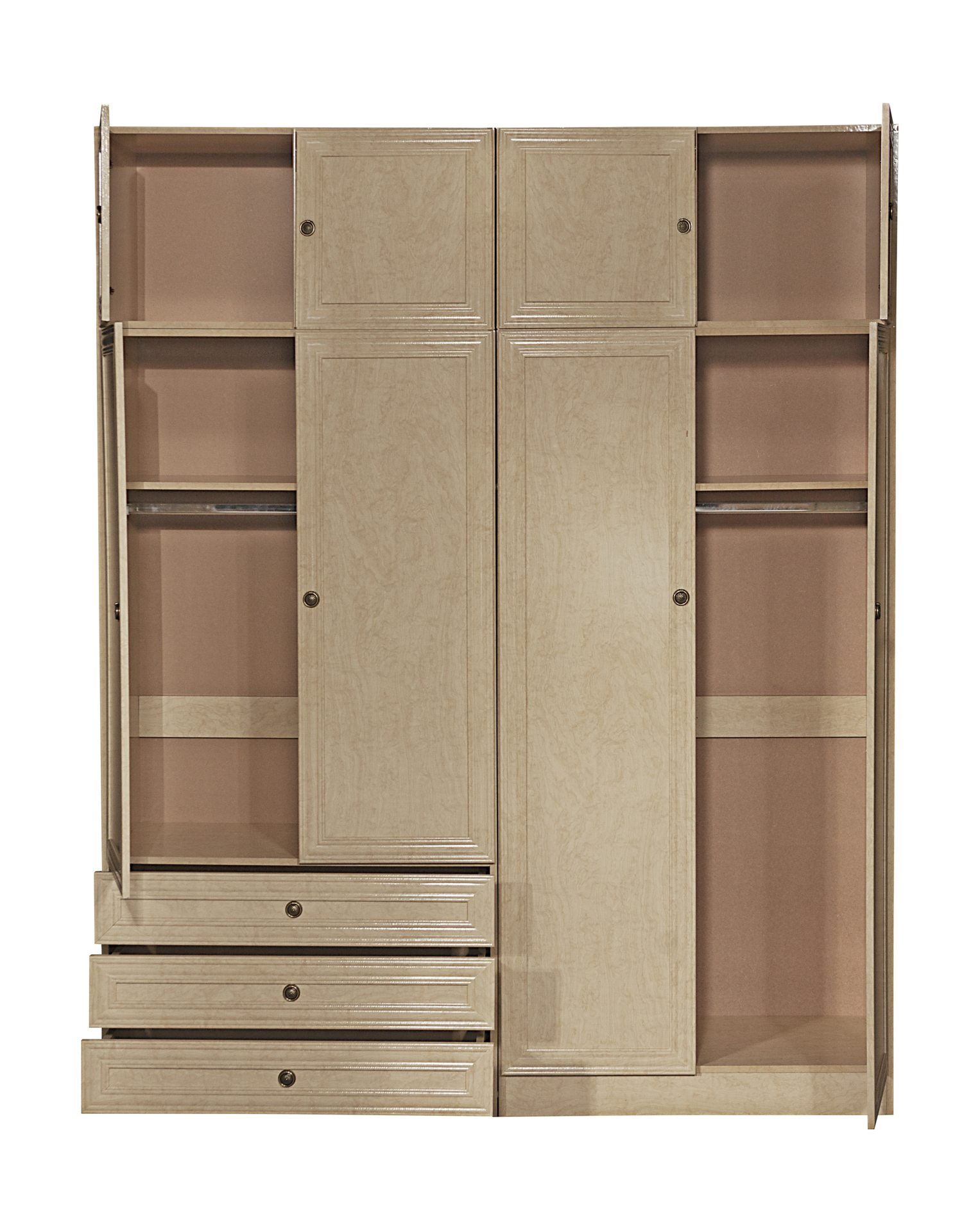 The Diva Wardrobe is designed for those who expect more from their living space—more elegance, more functionality, and more presence. Commanding in scale and crafted with meticulous attention to detail, the Diva transforms your bedroom into a sanctuary of order and sophistication. Its eight beautifully structured doors open to reveal a remarkably spacious interior, thoughtfully laid out to accommodate even the most extensive wardrobe collections. From full-length hanging sections for coats, dresses, and suits to wide adjustable shelving for folded garments, linens, and accessories, every inch of the Diva is designed to support effortless organization.