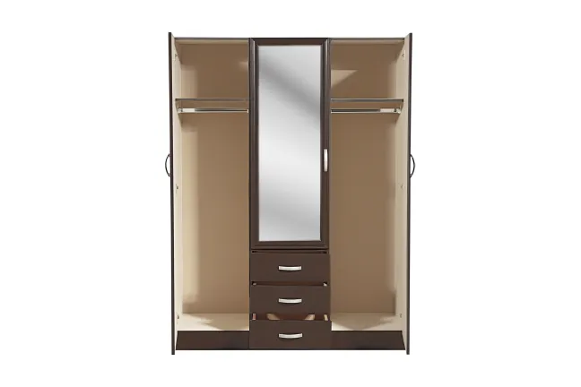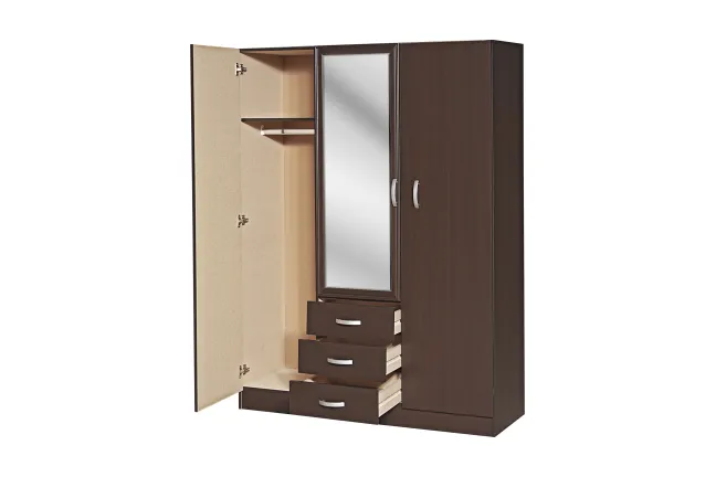 Behind its three gracefully paneled doors, the Elber reveals a beautifully arranged interior with generous hanging space and thoughtfully designed shelving—perfect for curated wardrobes and cherished pieces. Below, three smooth drawers glide effortlessly, providing distinguished storage for your most personal essentials.