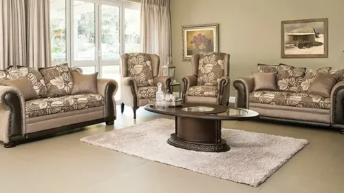 Step into the realm of contemporary elegance with our latest décor trend. Adorned in chic imported chenille fabric, this suite exudes sophistication and style. The stud detailing on the arms, along with the inclusion of loose back cushions, elevates its charm, making it a captivating addition to any space. Comprising two two-seater couches and two wingback chairs, this suite offers ample seating for gatherings or relaxation. Crafted with non-sag steel springs and supported by round wooden feet, it promises both durability and aesthetic appeal.